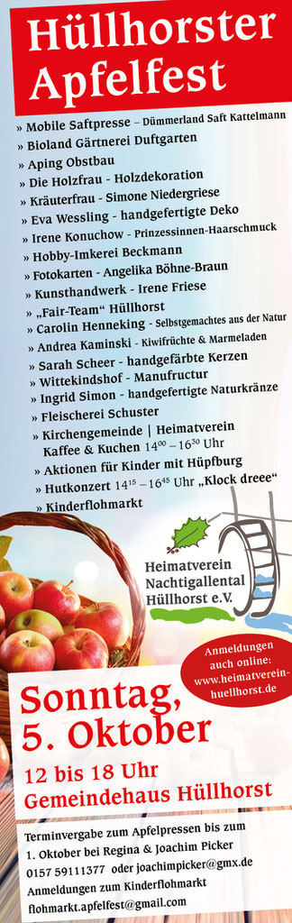 Die Kontaktdaten für die Anmeldungen zum Obstpressen und für den Kinderflohmarkt werden in der Septemberausgabe des „Kiek mal rin“ und auf der Webseite des Heimatvereins noch rechtzeitig bekanntgegeben.